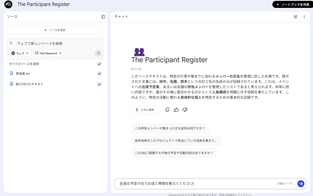 ②そのスクリーンショットをNotebookLMに読み込ませます。