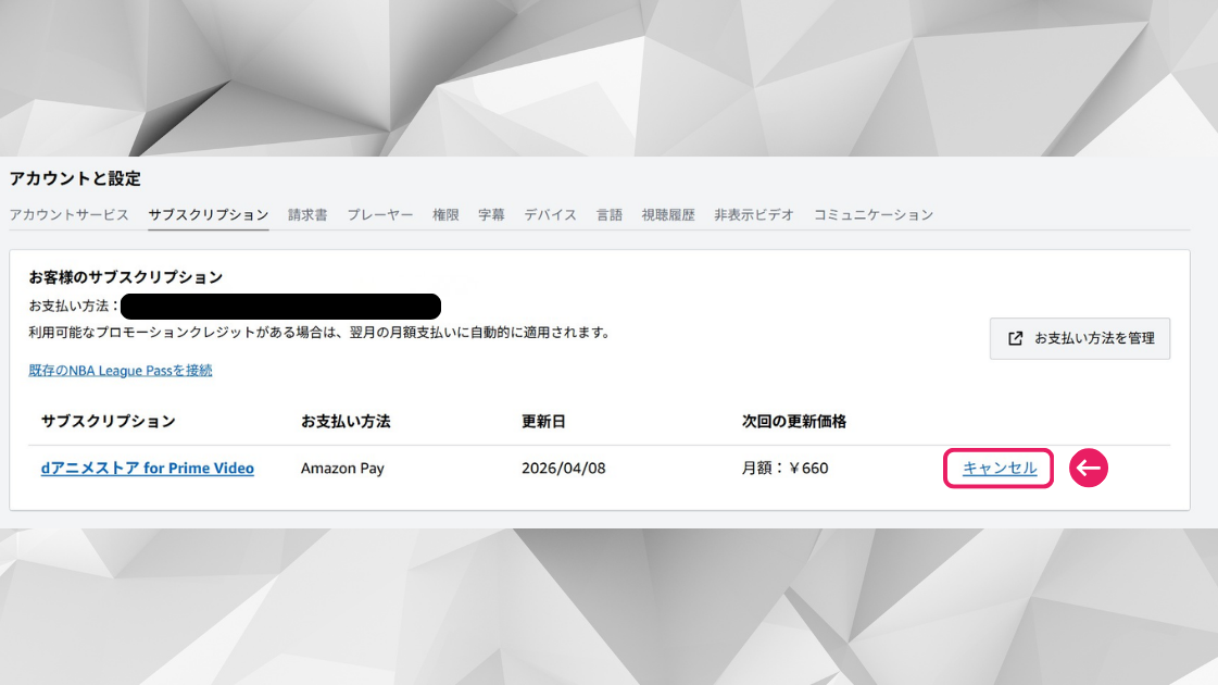 Prime Videoチャンネルの無料体験が終了した