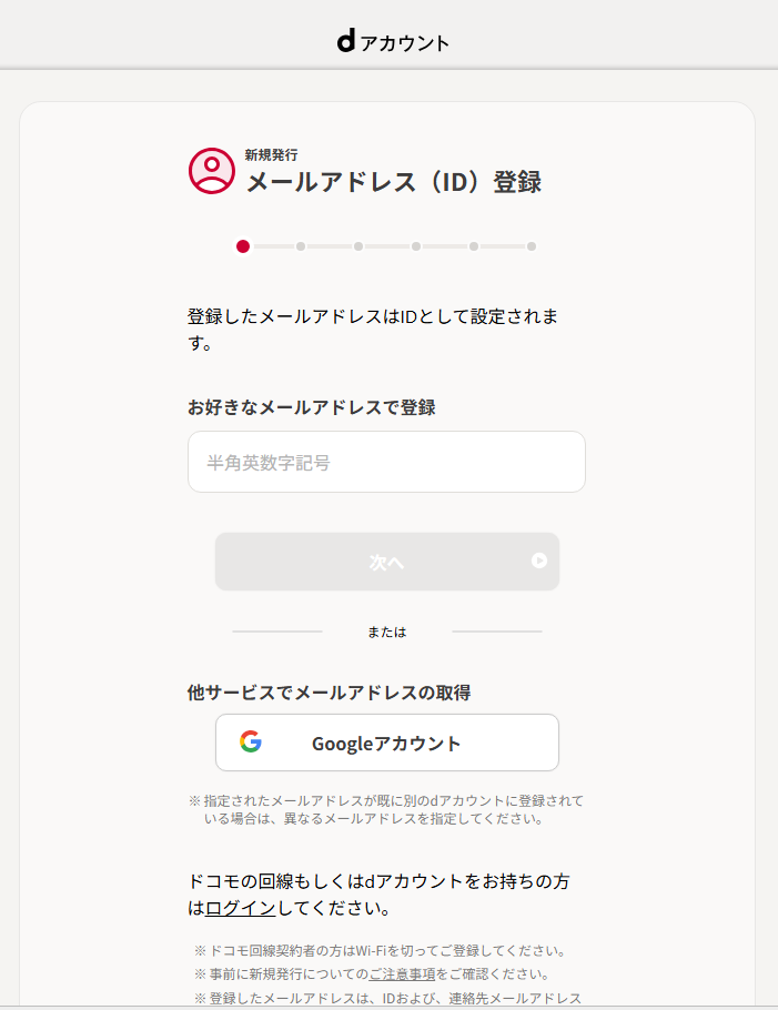 ステップ2:dアカウントでログイン(または新規作成)
