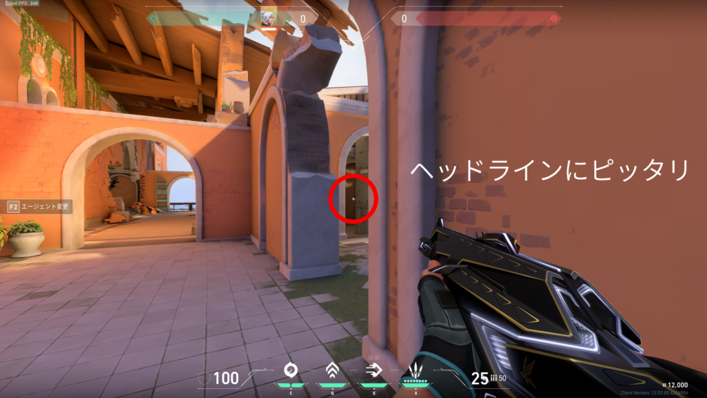 ヘッドラインがあった状態で、相手のいるであろう場所を予測して、移動のみで、マウスを動かさないで、エイムを合わせに行く。