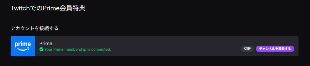 その関係でAmazonプライム会員には「Prime Gaming」という特典がついてきます。このPrime Gamingの特典の一つとして、Twitchで毎月1チャンネルに無料でサブスクライブできるようになっています。