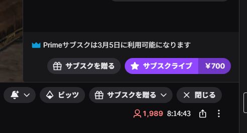 通常、サブスクするにはTwitch上で月額約600円~700円を支払う必要があります。